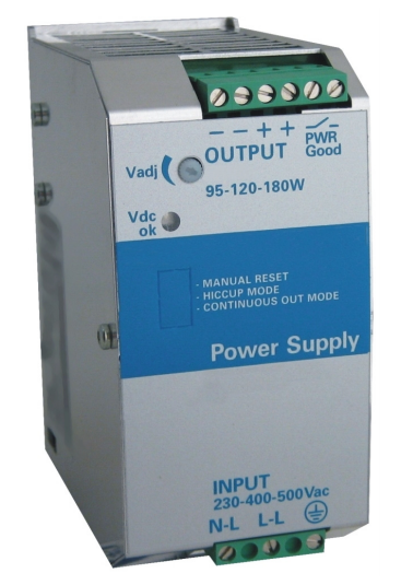 48VDC 2.5A (120Watt) from 100-240VAC power supply, adjustable from 48 - 55VDC, DIN rail
