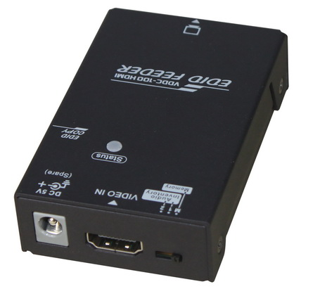 To load EDID data from the screen into EDID-GHOST, connect it directly to the screen, then press the "EDID Copy" button. If there is no EDID available on the screen, EDID-GHOST then has Default EDID, which is then used to emulate the desired resolution, which is selected using switch.
