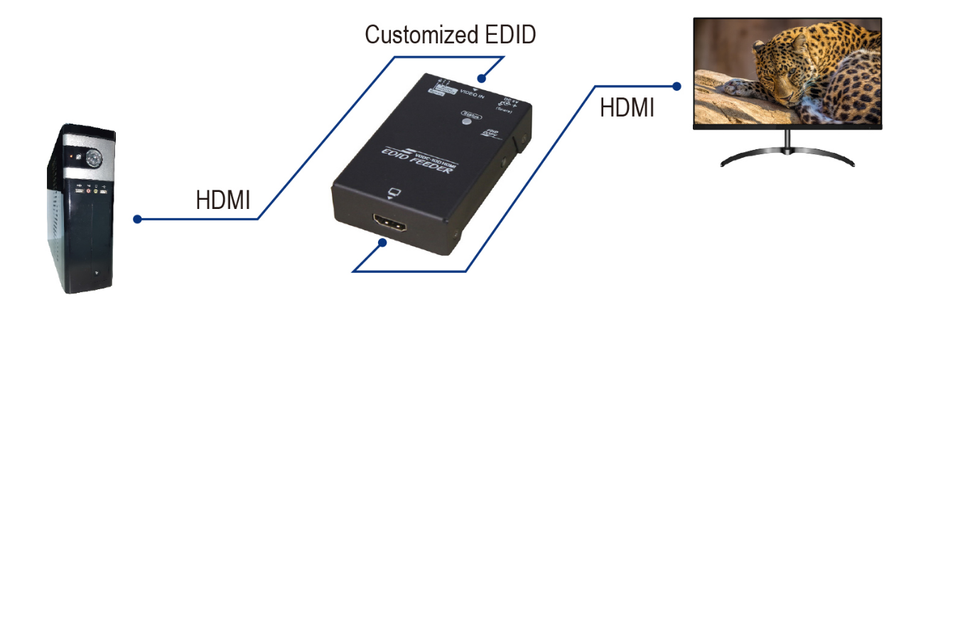 EDID-GHOST emulates the screen's information to the PC when the EDID signal cannot be sent through from the screen if, for example, a video extender or KVM switch is used.
