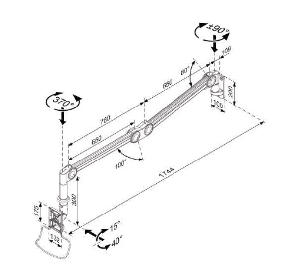 Vertical adjustment range: 1364mm Extension: 1774mm