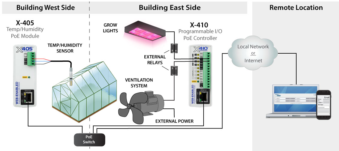 These modules have functional similarities with standard programable logic controllers (PLCs) and in many cases they can used as web-enabled PLCs. However, there are differences between the X-4XX modules and the PLCs. PLCs are typically programmed using Ladder logic, instead of X-4XX series Devices programmed either using its simple web page-based "task builder" or by writing a Basic script. The X-4XX Series modules are configured and operated using a web browser without the need for custom configuration software. The X-4XX series was built from scratch to modern network connection and supports various protocols such as HTTP, HTTPS, Modbus / TCP, SNMP and more.