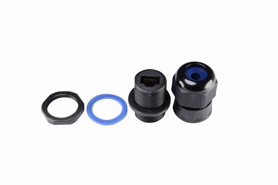 RJ45 IP67 waterproof through connector for chassis and panel mounting, With 20mm thread.
