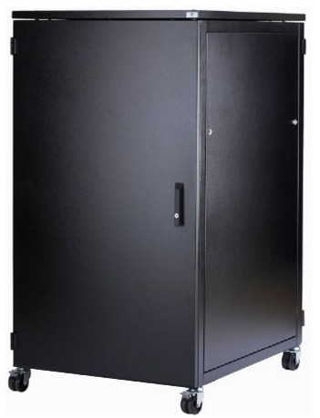 Sound-insulated 19" rack cabinet, 36U high, 80cm deep w/removable door with lock.