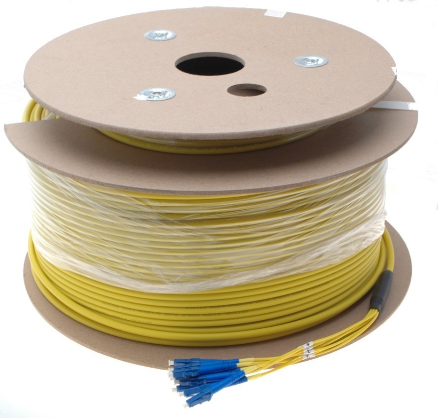 8 Core fiber cable single mode. 9/125, LSZH, 8 x LC connector, yellow, 300m