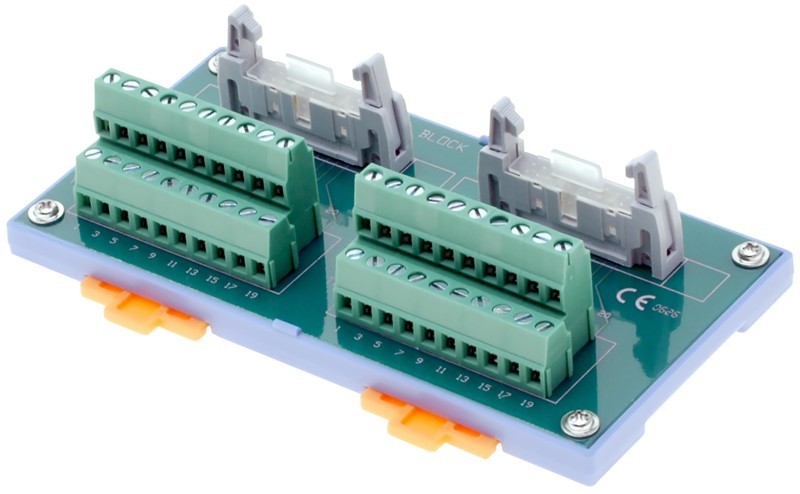 Terminal board with 2 x 20 screw terminals, 2 x 20 pole IDC male, 2 x flat cable included