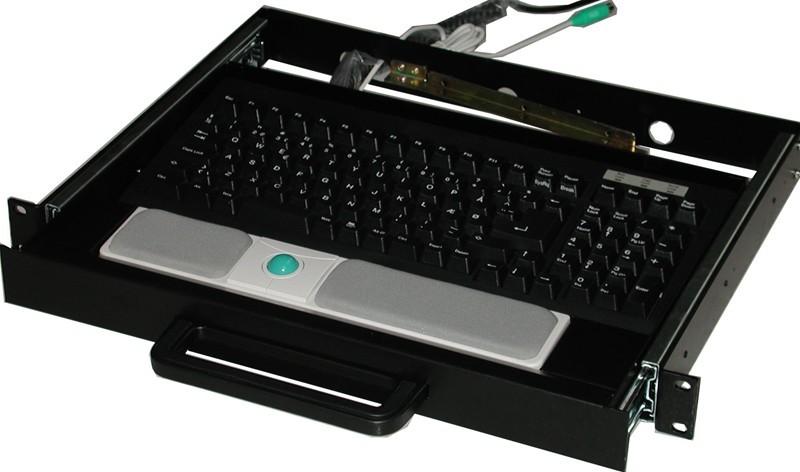 Svart tangentbord för PS/2 - 104 tangenter - danskt teckenuppsättning. 21 genomskinliga knappkapslar