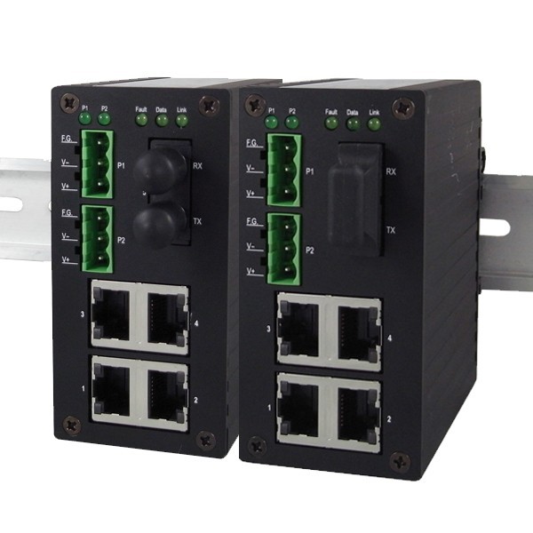 4 portar 10/100 / 1000mbit RJ45 + 2 portar 100 / 1000Mbit SFP-kortplats, managed switch, 12 - 48VDC och 24VAC
