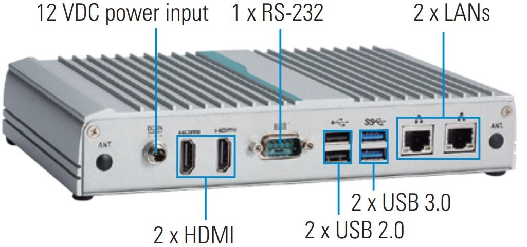 Fläktlös Embedded dator med Intel® Celeron® N3350, 2 HDMI, 2 GbE LAN och 6 USB, OS support: Win 10 IoT, Linux