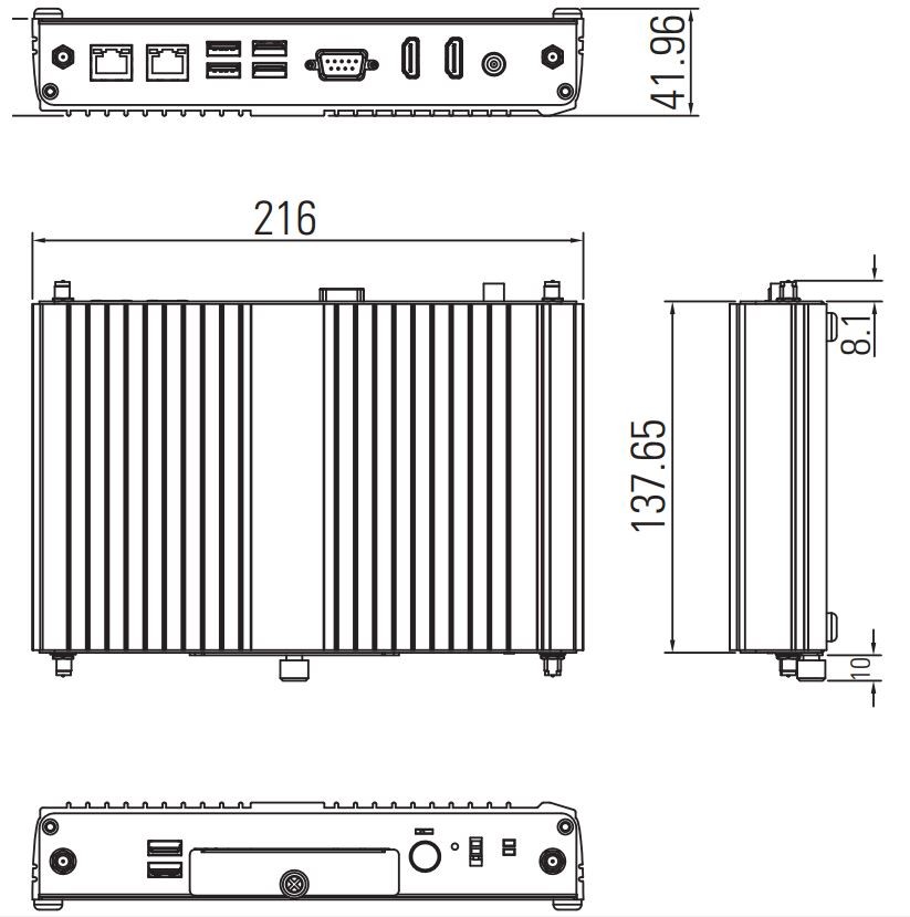 Dimensioner 216 mm (8.5") x 137.65 mm (5.41") x 38 mm (1.49")