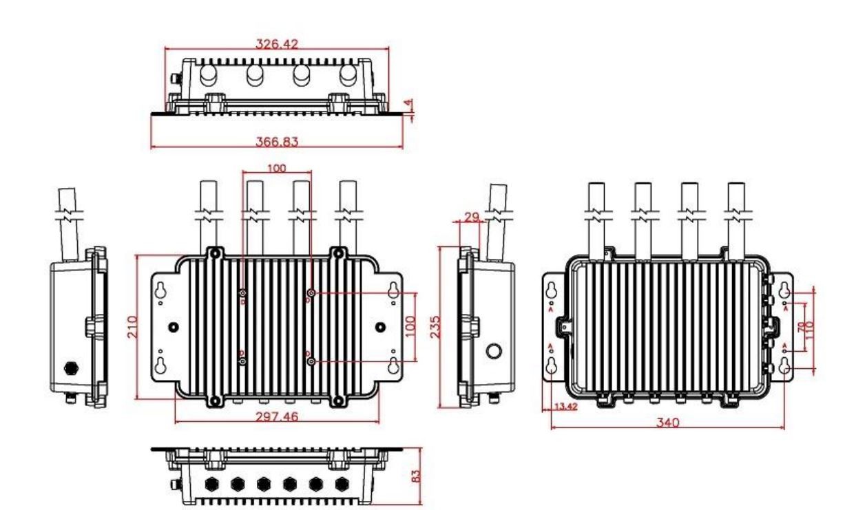 210 x 366,83 x 83 mm (8,27" x 14,44" x 3,27")