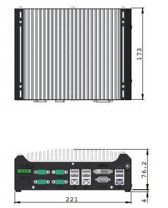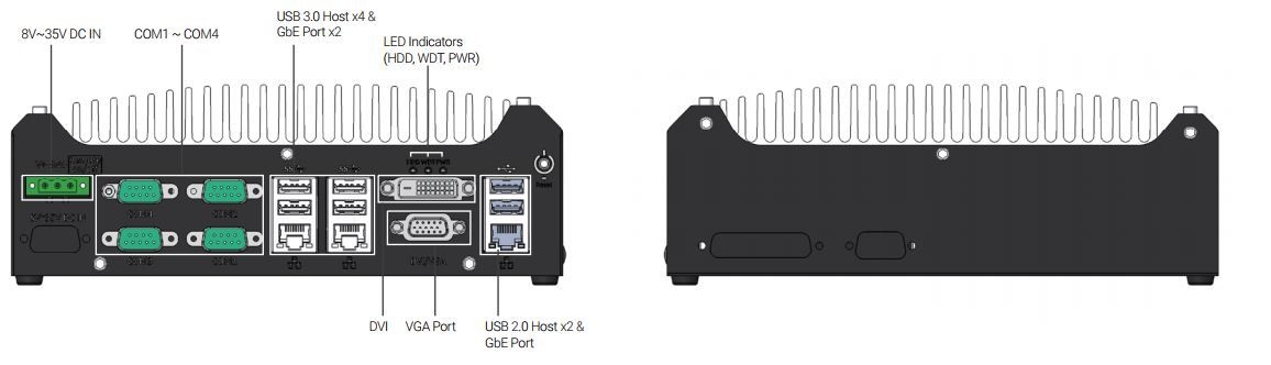 Fläktlös industriell PC i7 Kabylake (8550U) 2xRS232, 1x ETH, 7xUSB, VGA, HDMI, Väggfäste 12VDC