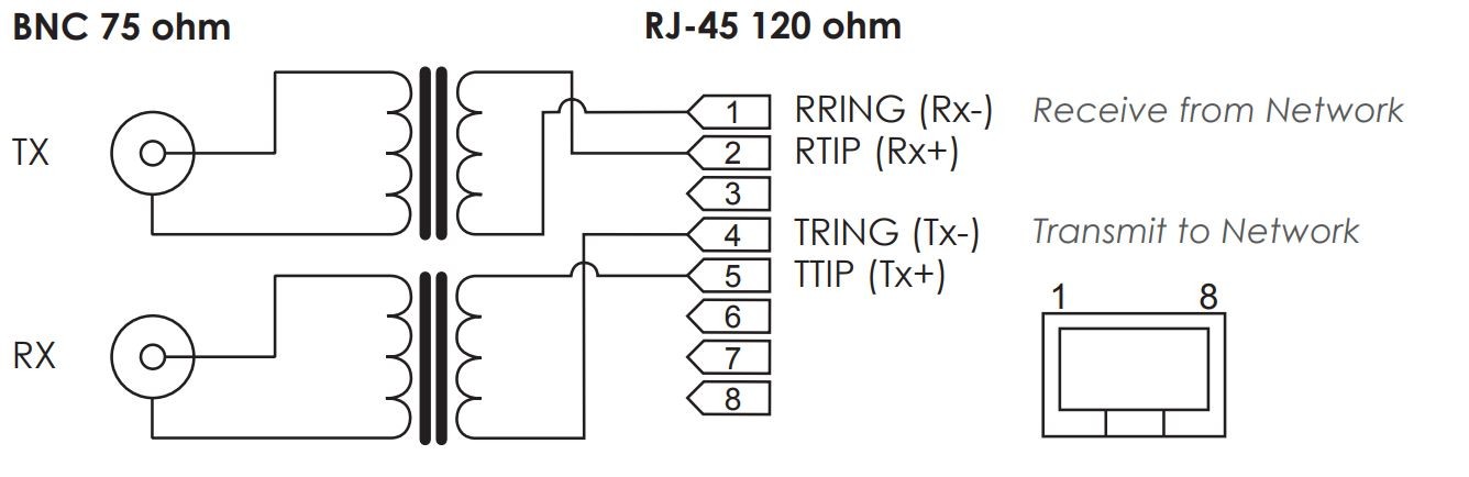 Konverterar mellan 75Ω COAX-kabel och 120Ω tvinnat par E1 (2048 Kbit)