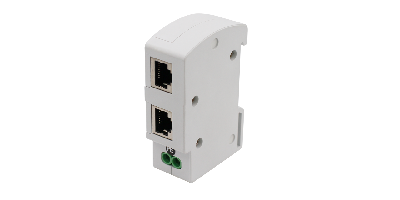 PoE nätverkstransientskydd (överspänning under åskväder) 2xRJ45, 10/100/1000 Mbit, DIN-fäste