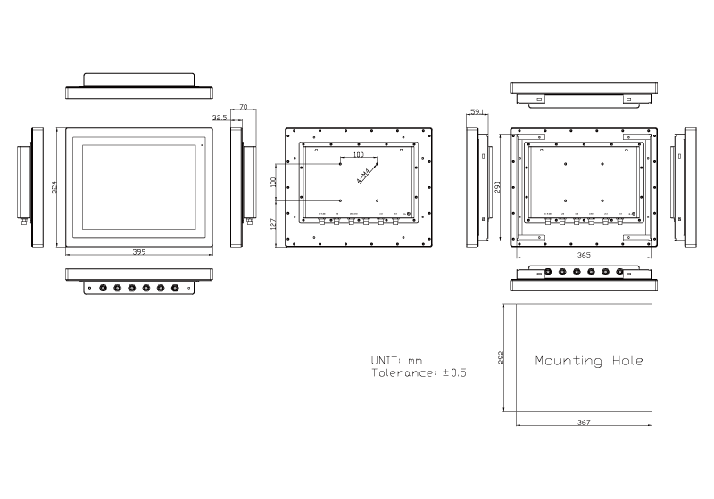 15 tums marinpanel PC H310, 8 GB RAM, 128 GB SSD, IP65 framsida
