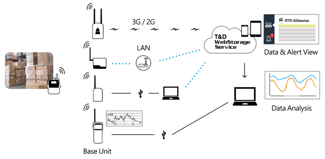GSM / LTE / 4G / GPRS-basstation för T & D-dataloggar. Mobila datainsamling från trådlösa T & D-meter. Moln-tjänst