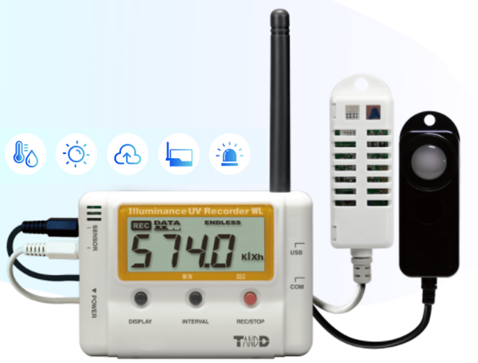 LOG-L574-H kan inte bara mäta och registrera UV, ljusstyrka, temperatur och fuktighet, men kan också registrerar och visar kumulativa UV och ljusstyrka.