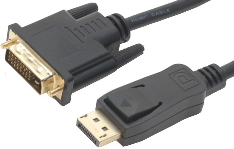 Displayport kabel version 1.2. DP hane til DVI-D hane, mekanisk lås, 4K, svart, 3,0m