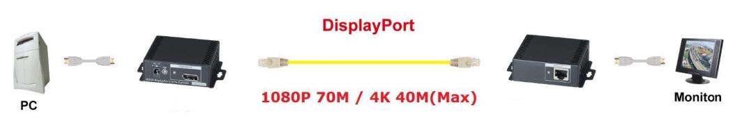 DisplayPort Extender 4K upp till 100 meter över Cat6a, 4k60 70m, Full HD 100m. 12VDC