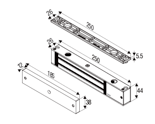 Elektroniska dörrmagnet, hållkraft 272 kg, 12 / 24VDC med automatisk omkoppling. inomhusbruk