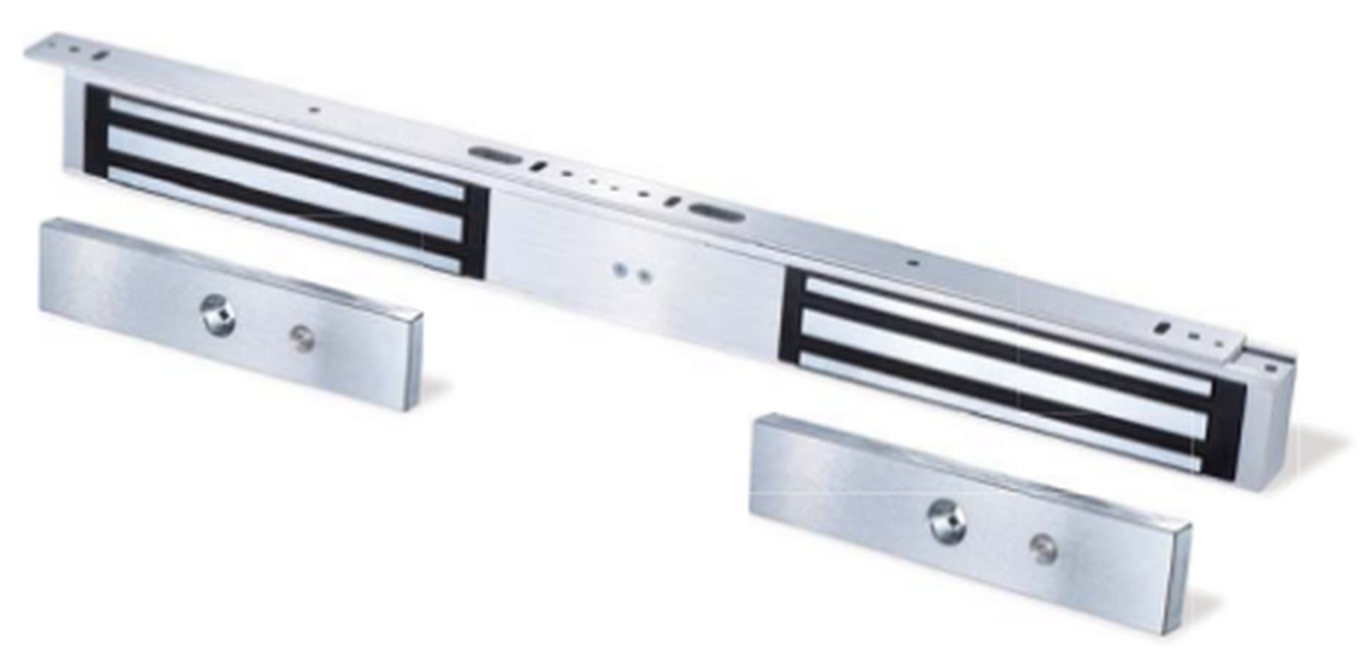 DOOR-MAGNET-DUAL12 används för vingdörrar, svängdörrar, dubbeldörrar o.li. där det kan installeras ett elektroniskt lås plattor. DOOR-MAGNET-DUAL12 kan användas med de flesta passersystem som har enkel eller dubbel reläutgång. Produkten innehåller 2 kraftfulla elektromagneter, som "låser" den fastnade till metall som är monterad på respektive dörr. När det finns spänning på luckmagneten DOOR-MAGNET-DUAL12 kan luckan inte öppnas. En åtkomstkontroll ansluten till DOOR-MAGNET-DUAL12 som accepterar sådana. ett lösenord som kommer att avbryta spänningen till magnetspole och magneterna släpper så att dörrarna kan öppnas. Hållkraft: 2 x 544 kg. Automatisk växling mellan 12VDC och 24VDC spänning för att hålla magneten. Beräknad strömförbrukning är minimal 12Watt. När elektro matas med spänning i hållmod, är det lempelig att nätaggregaten för DOOR-MAGNET-DUAL12 kan minst dubbelt kraft (25 - 50Watt), detta för att minimera värmegenerering i kraftförsörjningen