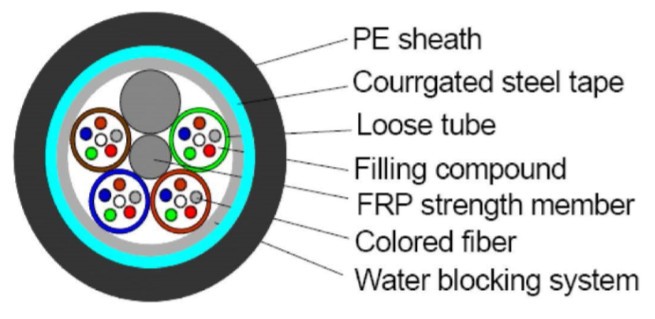 Armerad Single Mode 96-kärn FRP-fiberkabel för utomhusbruk, 9 / 125μm, 1000m på reel
