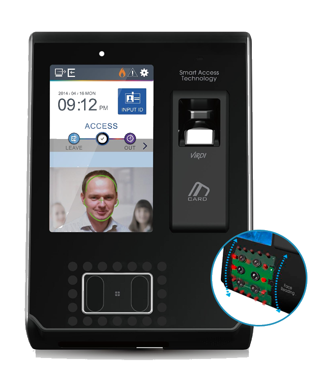 Ansiktsigenkänning och identifiering. Automatisk inställning av kamera - Lämplig för rullstolsburna och höga personer. Patenterad fingeravtrycksdetektering som avslöjar "falskt finger" -finger kan vara försedd med papper, filmer, silikon, gummi och gelatin. FBI PIV-certifierad fingeravtryckssensor. System med VoIP (intercom).