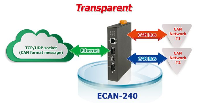 MODBUS TCP-klientfunktion som används för att implementera kommunikation mellan en CAN-buss och en Modbus TCP-server. Som kan komma åt Modbus TCP-servern via kommandonskonfigurationen. När ETH-CAN2-MOD-GW mottar I / O-data, kommer det att vidarebefordra dem till de externa kan-enheterna för analys, kontroll eller annan verksamhet. När ECAN 240-modulen är konfigurerad kan den också komma åt Modbus TCP-servern via ett CAN-meddelande.