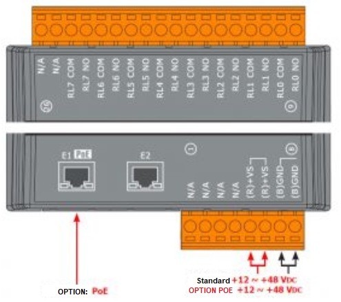 8 x Power Relä COM NO, 24VDC / 250VAC 5A, 2 x RJ45 Ethernet Modbus/TCP/UDP, 12 - 48VDC