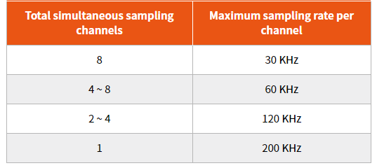 200kS / s (200 kHz) för varje kanal samplingshastighet