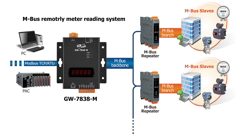 I Automation är Modbus TCP en av de vanligaste kommunikationsstandarderna. Tillverkaren utvecklade Gateway Eth-MOD-MBUS-I för Modbus TCP för M-buss, möjliggör direkt överföring av mätdata till ett styrsystem med Modbus TCP. ETH-MOD-MBUS-I stöder upp till 100 enheter på M-buss. Efter en första konfiguration av M-bussverktyget, kommer Eth-Mod-MBus att läsa mätdata autonomt. PLC eller PC som en Modbus TCP-klient kan enkelt komma åt mätdata via en TCP-anslutning.