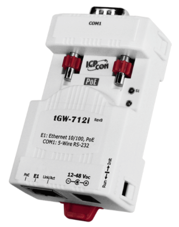MODBUS / TCP till seriell RTU Master Slave, Gateway, 1 x RJ45, 1 x RS232 isolerades, -25 - + 75 ° C, PoE, eller 12 - 48VDC