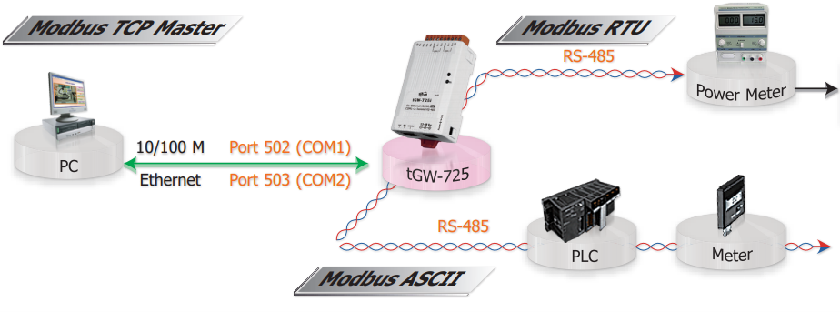 ETH-MODGW7xx serien är en Modbus-gateway som möjliggör en Modbus TCP / IP - UDP värd att kommunicera med seriell Modbus RTU / ASCII fjärrterminalenheter via ett Ethernet-nätverk, vilket eliminerar kabellängd begränsning av etablerade och seriell kommunikationsanordningar . Modulen kan användas för att skapa ett par-anslutning ansökan (par-anslutning) samt seriell-bro eller seriell-tunnel ansökan) och kan då dirigera data över TCP / IP mellan två seriella Modbus RTU / ASCII-enheter, är användbar när du ansluter stordatorer, servrar eller andra seriella enheter med Modbus RTU / ASCII-protokoll och har inte ens Ethernet kapacitet. Det maximala antalet TCP-anslutningar för varje serieport är upp till 32 (RevB), detta har flera master tillgång till slav enheter i samma serieport. Läs cache-funktionen används för att spara tidigare förfrågningar och svar i minnesbufferten i ETH-MODGW7xx. När andra HMI / SCADA ordnade styrenheten sänder samma förfrågningar till samma RTU slav anordningen återgår den cachade svaret omedelbart. Detta särdrag reducerar dramatiskt belastningen på de seriella