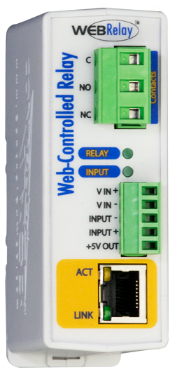 Webrelä har också optiskt isolerad ingång som kan användas för att övervaka enhetens tillstånd, styra reläet eller kontrollera ett fjärrrelä en annan placera på nätverket. Denna funktion är användbar för att expandera utgången från en PLC till en annan byggnad eller låta en strömbrytare styra en anordning i ett annat läge. Anslut bara reläkontakterna till enheten som ska styras och slå på och av reläet externt med hjälp av en webbläsare. Webreläet har en optiskt isolerad ingång som låter dig övervaka en enhets tillstånd eller styra reläkontakterna med en spänning. Webrelä kan till och med användas utan en dator (när installationen är klar) genom att ansluta två enheter tillsamhaneees. Detta görs genom att ansluta en strömbrytare eller appliceras en styrspänning till en enhet och anslut en annan anordning till ett avlägset ställe för att enheten ska styras. En PLC kan styra en motor i en annan byggnad med två webbreläanordningar.