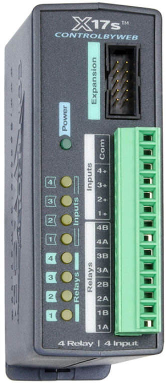 X-17s ™ -udvidelsesmodulet bruges sammen med en X-400 eller X-600M controller. X-17'erne er et multifunktionsmodul med fire relæer og fire optisk isolerede digitale indgange. Et eller flere X-17s ekspansionsmoduler kan tilsluttes en X-400 eller X-600M controller med et båndkabel, der giver både strøm og kommunikation.