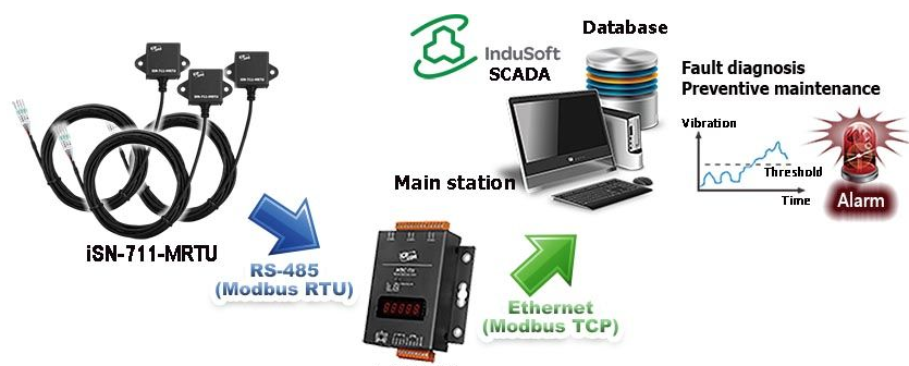 Modulen är en intelligent vibrationsdetekteringsenhet. Den har en inbyggd MEMS accelerometer, så att den enkelt kan realisera vibrationsövervakning av utrustning. Modulen stöder ett RS-485-kommunikationsgränssnitt med Modbus RTU-slavprotokoll, användaren kan sända Modbus RTU-kommandon för att läsa sensorns data via RS-485-gränssnitt. Modulen är lämplig för vibrationsdetektering i realtid på kritiska platser för fabriksövervakningstillämpningar, såsom produktionslinjeutrustning, motorer och pumpar, etc., där det finns ett behov av att övervaka vibrationsapplikationer.