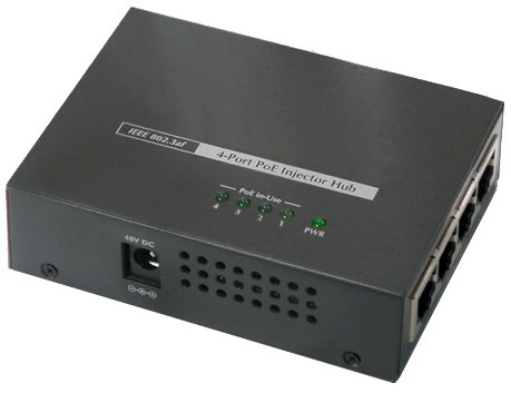 Med denna medelstora injektor, PoE-nätverksenheter som övervakningskameror, IP-telefoner, åtkomstpunkter etc. ström tillförs via nätverkskabeln även om switchen inte stöder PoE. Denna injektor sätts in mellan switchen och nätverksenheterna och matar spänning till nätverkskabeln.