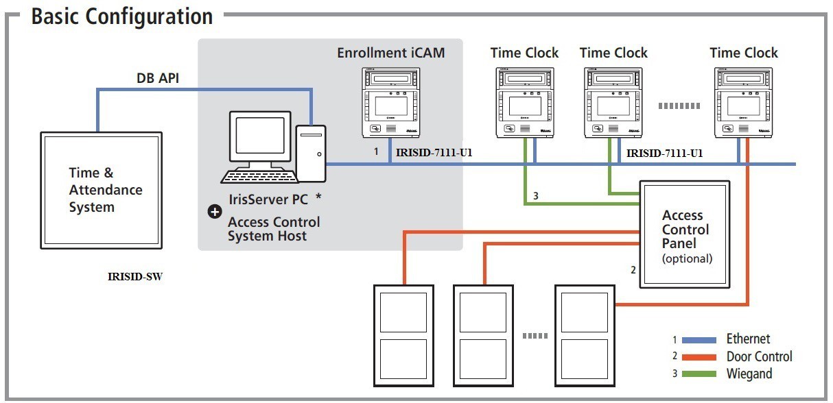 IRIS-7111-U1 & nbsp; är en terminal med en irisskanner och en RFID-läsare för åtkomstkontroll och registrering av arbetstid etc. IRIS-7111-U1 kan användas fristående under långa tidsperioder när poster lagras i terminalen eller så kan den anslutas till ett nätverk för att ansluta till en PC som kan användas för att konfigurera systemet och samla in och bearbeta inspelad data samlas in vid terminalen. Som tillbehör kan tidsregistreringsprogram köpas för 50 användare.