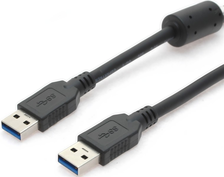 USB 3.0 kabel med ferrit, A hane – A hane, AWG28, svart, 5,0m