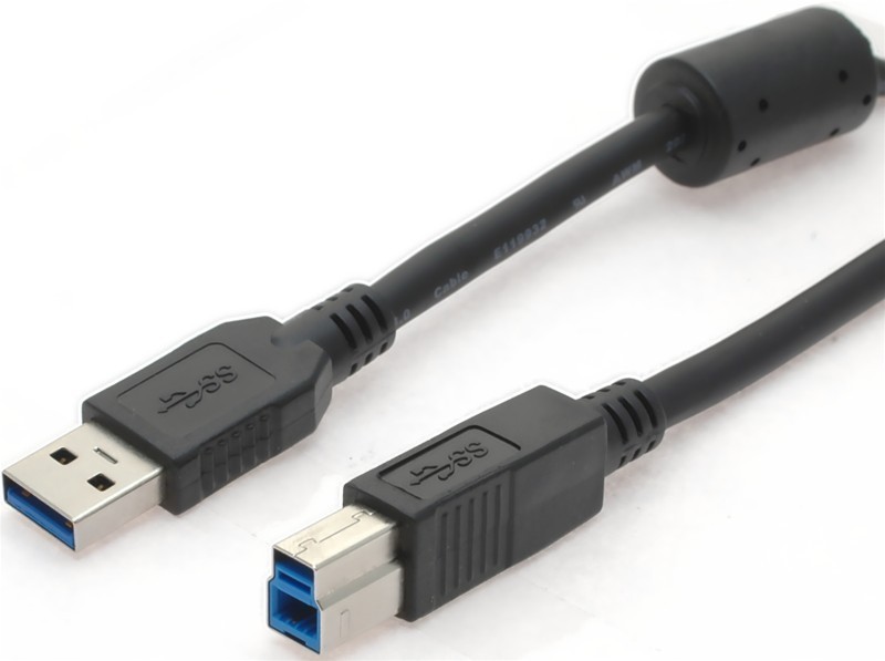 USB 3.0 kabel med ferrit, A hane – B hane, AWG28, svart, 5,0m