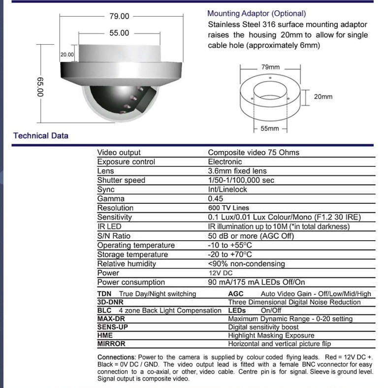 Hög upplösning analog Mini Dome-kamera i rostfritt stål och IP67 nära till t.ex. marin användning