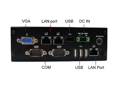 | I/O | 1 x Digita I/O tilslutning via 6 pin terminalblok. Tænd/sluk knap, 1 x Power LED, 1 x HDD LED 1 x PCIe Mini-card interface til trådløs eller GPRS modul |