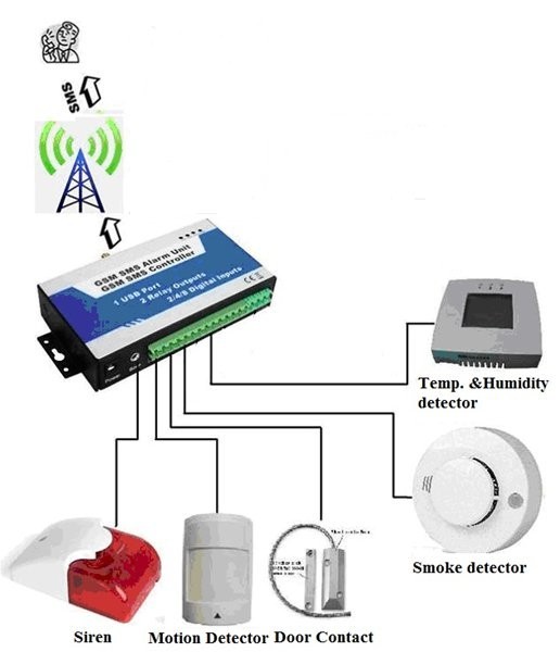 GSM-larm controller - Larm till mobiltelefon via SMS. 4G LTE