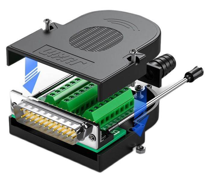 Enkel lösning för speciella uppgifter med DB25 kontakter. Finns i DB9, DB37, etc.