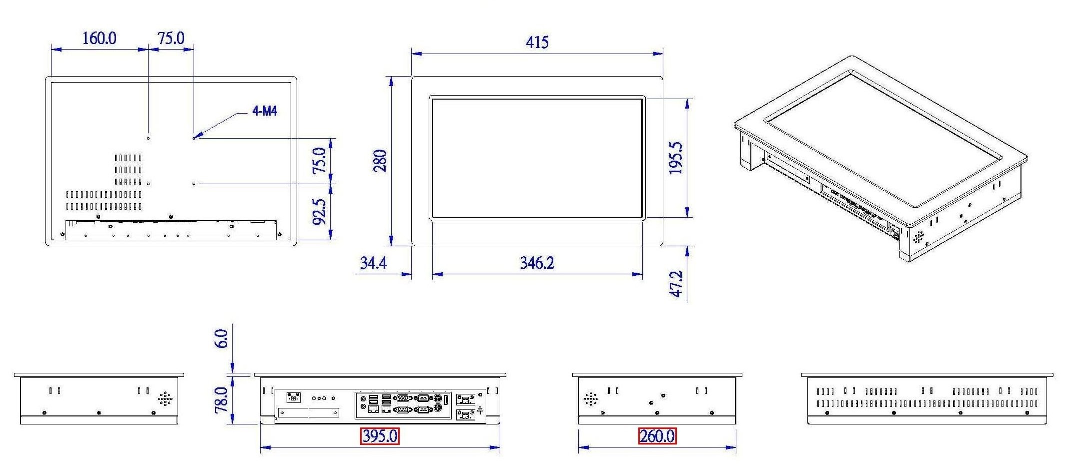 | Touch | 15.6” 5-Wire Resistive Single Touch |