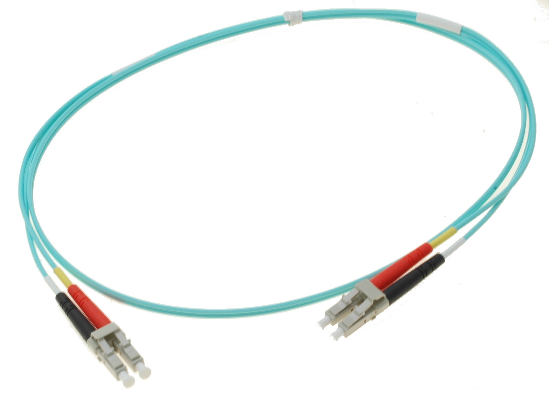 Multimode med LC-hankontakt, 50/125 µm. Fiberkabel med 4 hankontakter. De optiska fiberkablarna är gjorda av glasfiber med två ledare för RX respektive TX. Bandbredd vid enkelläge 1 GHz och vid multiläge 155 MHz. Finns i längder från 0,5 meter till 100 meter.