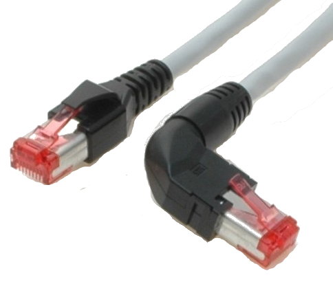 Grå katt. 6 RJ45 patch kabel STP med 90 ° vinkel kontakt i ena änden, 10 meter