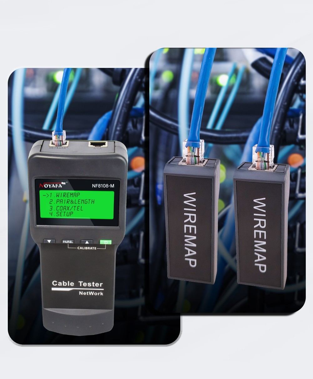 Tester Cat. 5, 5E, 6 och 7 nätverkskablar. Andra kablar kan skapas genom att kalibrera ledarna.
