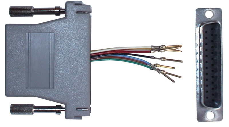 Konfigurerbar med DB25-kontakt i ena änden och RJ45 i andra änden.