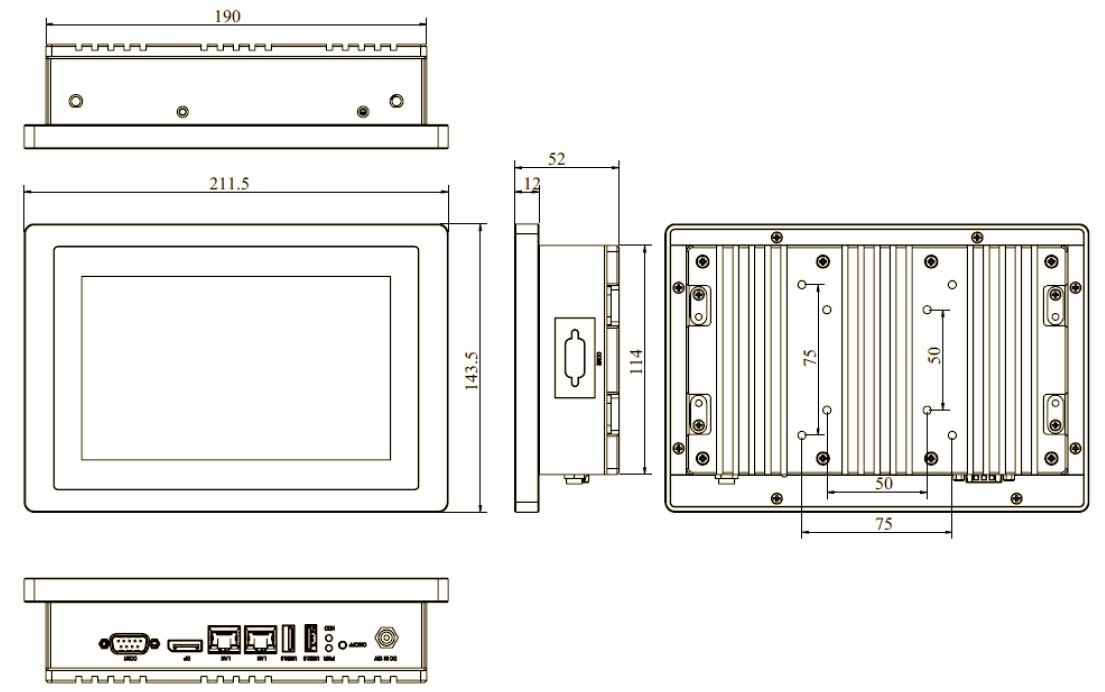 Skærm 7” TFT-LCD Max. Resolution 1024 x 600 Luminance (cd/m2) 500 Contrast 800:1 Max. Color 16.7M View Angle (H/V) 150/150 Backlight Lifetime(hrs)50000