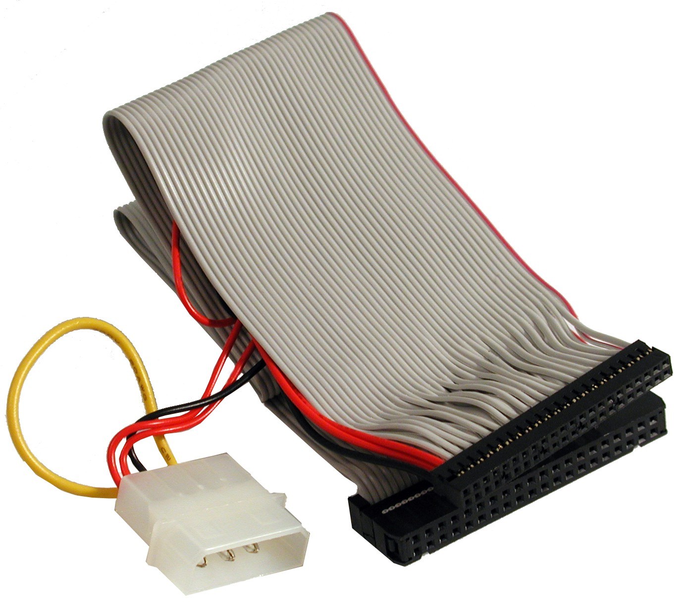 Konverterkabel mellan 44-pins 2½-kontakt och 40-pins 3½-kontakt, platt kabel. Molex för 5VDC för 2½ hårddiskar